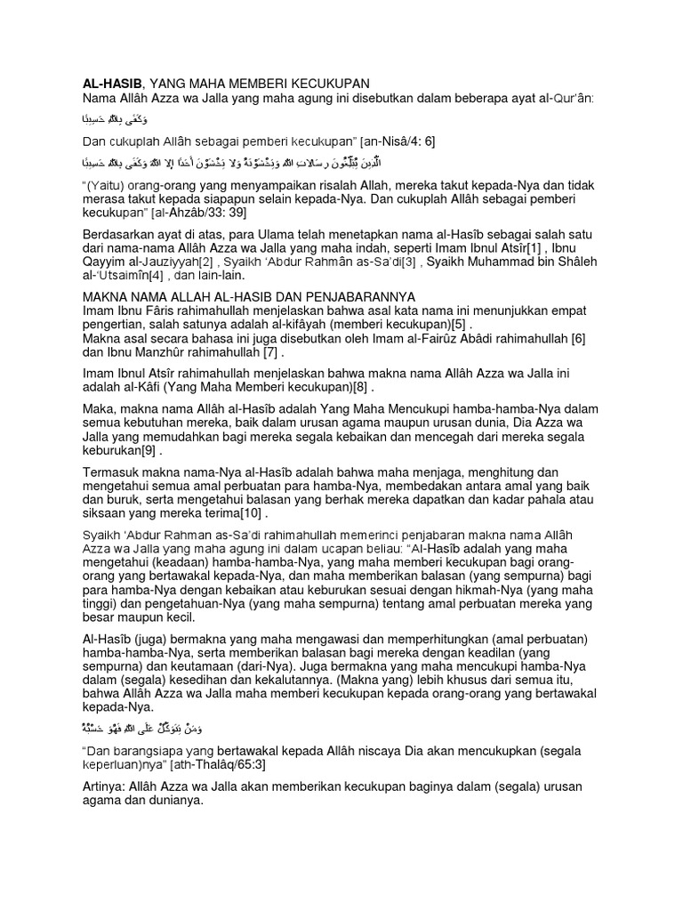 Bhsa arab dari ya alloh yang maha mencukupi :